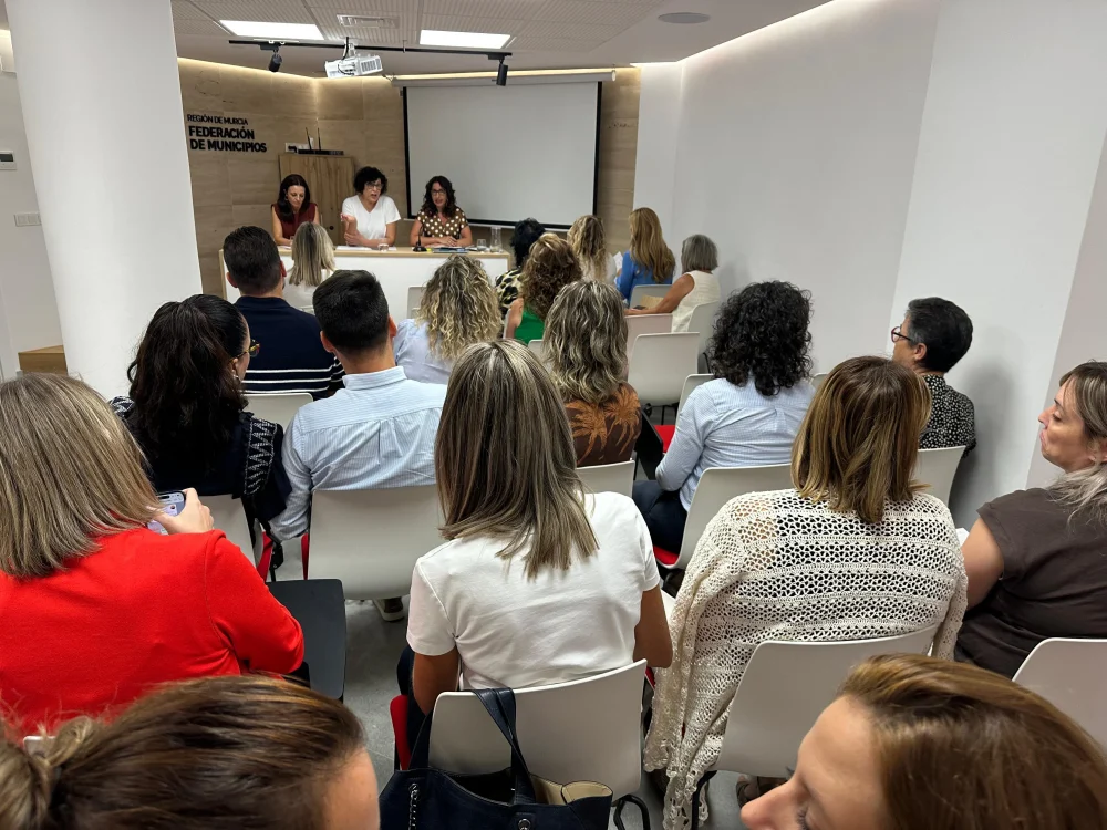A ella han asistido más de una veintena de concejalas y concejales para escuchar los temas expuestos por las directoras generales de la CARM, María José de Maya, responsable de Servicios Sociales, Tercer Sector y Gestión de la Diversidad, que ha hablado del programa Materias Básicas (tarjeta monedero) y nueva convocatoria de subvenciones PACIS, y Ana Belén Martínez Garrido, encargada de Mujer y Prevención de la Violencia de Género, que ha expuesto el programa Corresponsables.